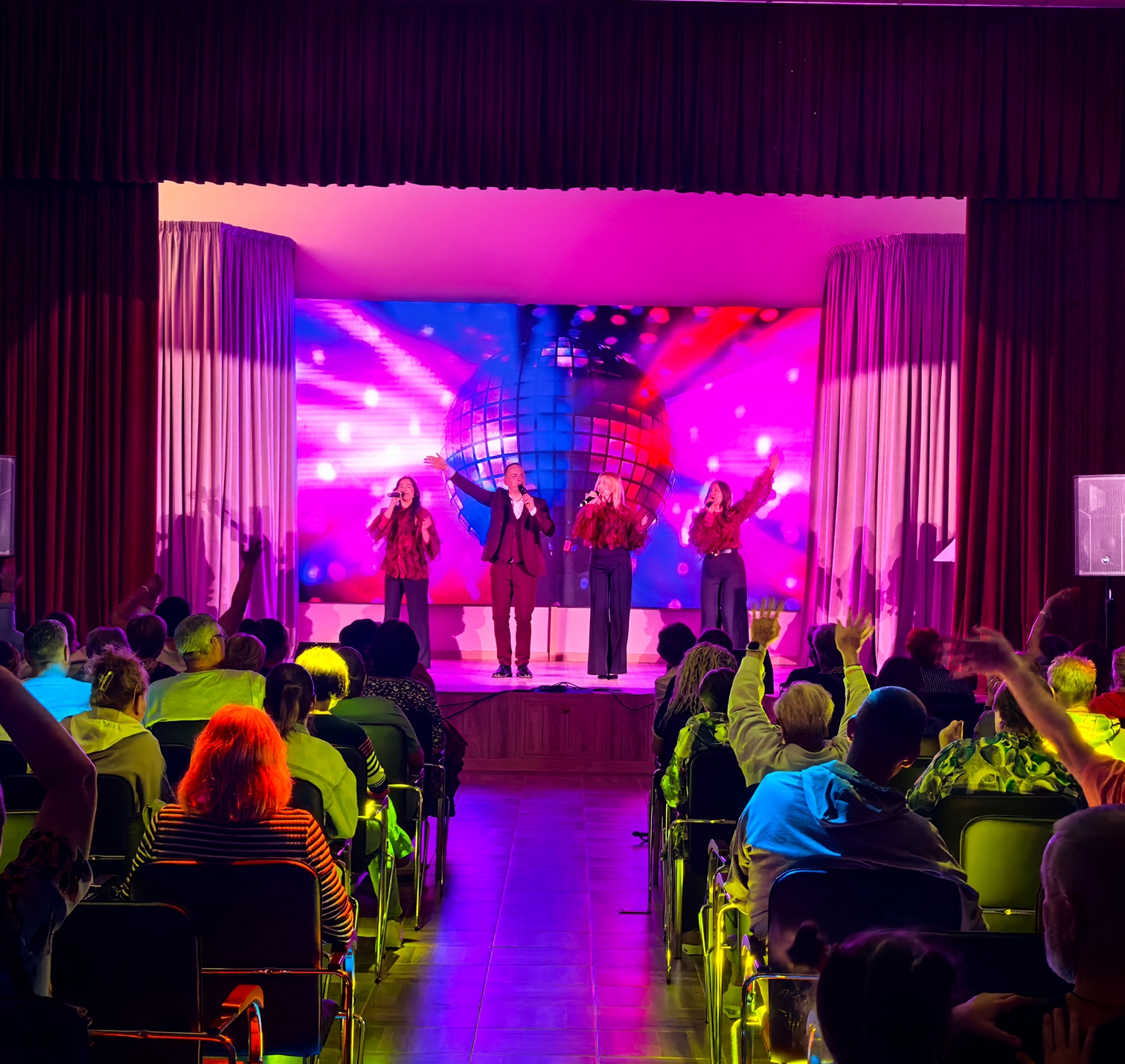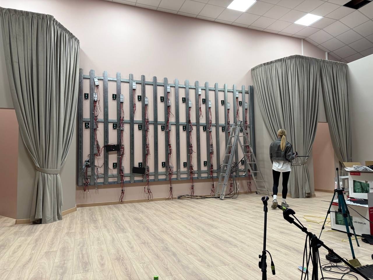 Для нового санатория в Смоленской области «Дугино» мы выполнили оперативный монтаж светодиодного экрана премиум-класса в конференц-зале, а также произвели монтаж звукового и светового оборудования в их концертном зале.