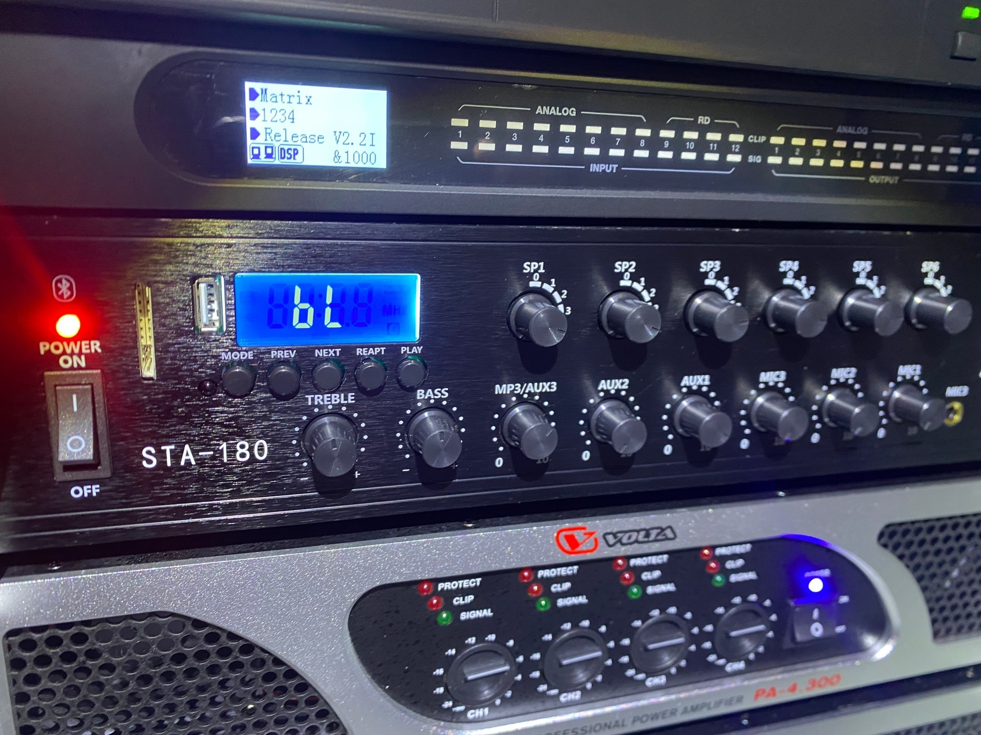 В данной инсталляции мы использовали самую современную аудио аппаратуру и колонки. Здесь впервые были применены наши новые акустические системы колонного типа, позволяющие получить максимальную разборчивость речи в акустически сложных помещениях. Установлены акустические системы колонного типа  в основном зале, в алтаре, в трапезной и в коридоре.